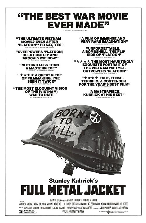 Ma sélection 1- Full Metal Jacket (Stanley Kubrick) Trailer IMDB 2- Near Dark (Katherine Bigelow) Trailer IMDB 3- Robocop (Paul … Plus
